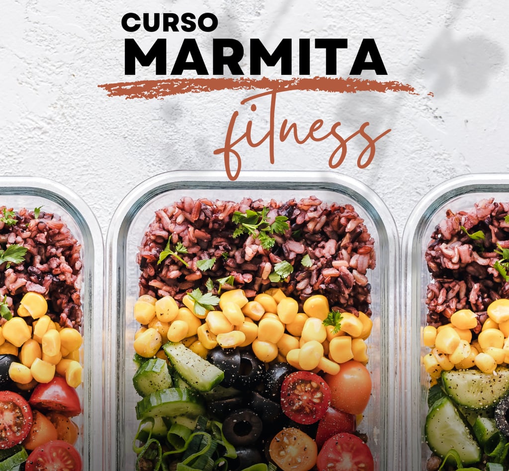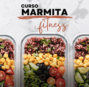 Ganhe acesso ao curso Marmitas Fitness completo com certificado e aulas gravadas mostrando como montar marmitas saborosas e saudáveis para a semana inteira.
